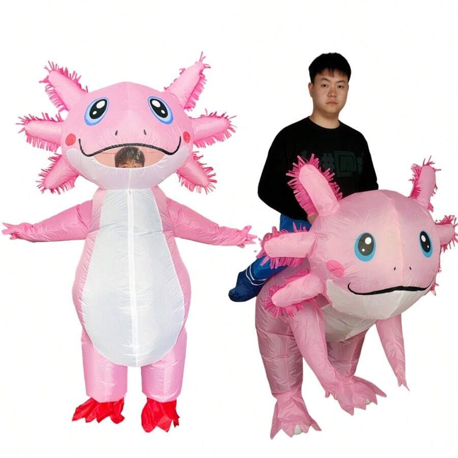 Axolotl Luxury Halloween Inflatable Costume, Pink Standing And Riding Salamander Inflatable Set, Adult Men's And Women's Role-Playing Party Costume