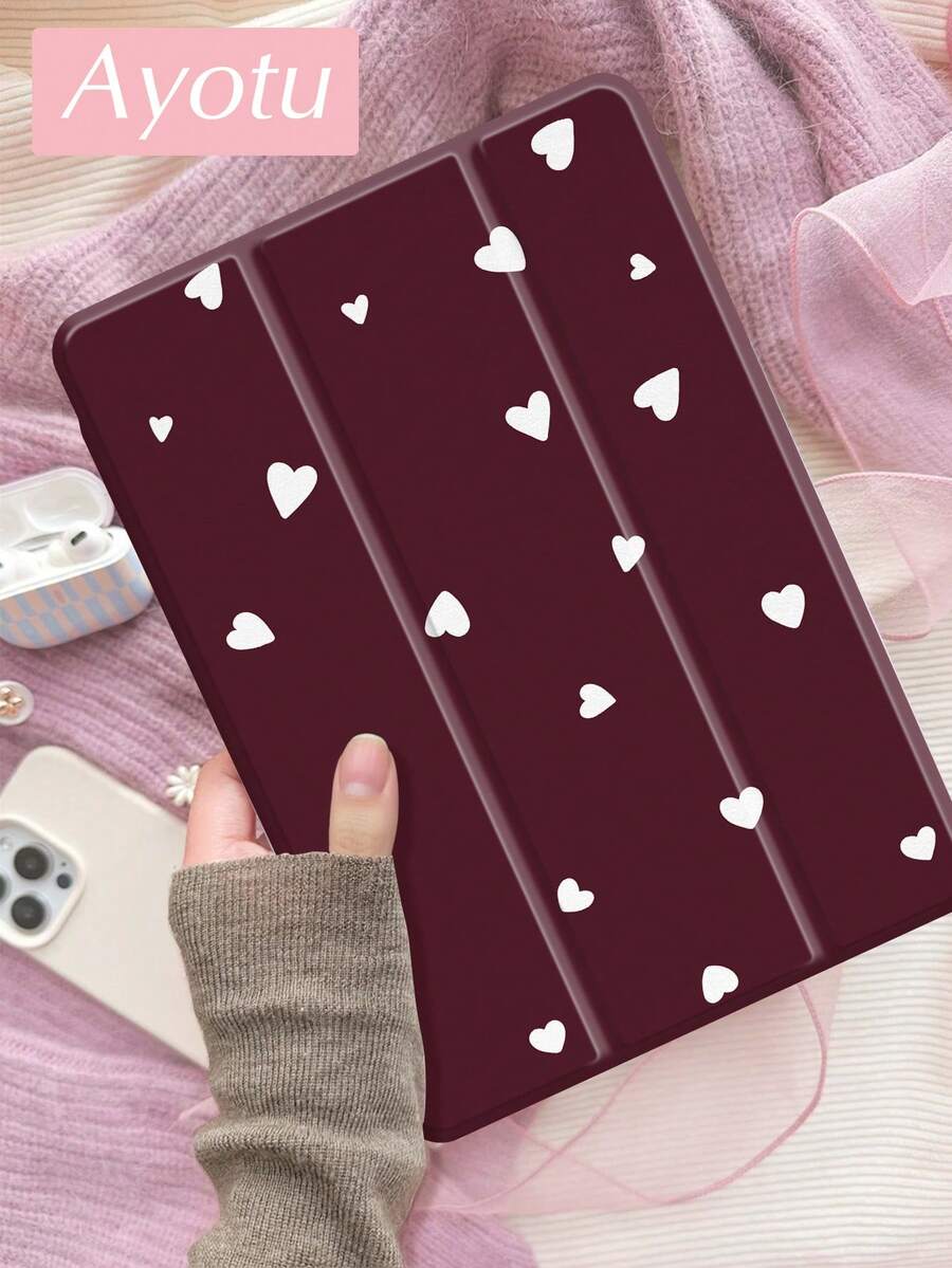 Ayotu 1pc Burgundy Red And White Heart Pattern Tablet Case & Kindle E-Book Case Compatible With IPad 10th Generation, IPad 11/Air 4th/Air 7th/9.7 Inches, Compatible With Samsung Galaxy Tab A9 Plus, Kindle (11th Generation-2024 Release)(6 Inch), Kindle Paperwhite 12th Gen 2024, Great Holiday Gift, Stylish And Simple Pattern.