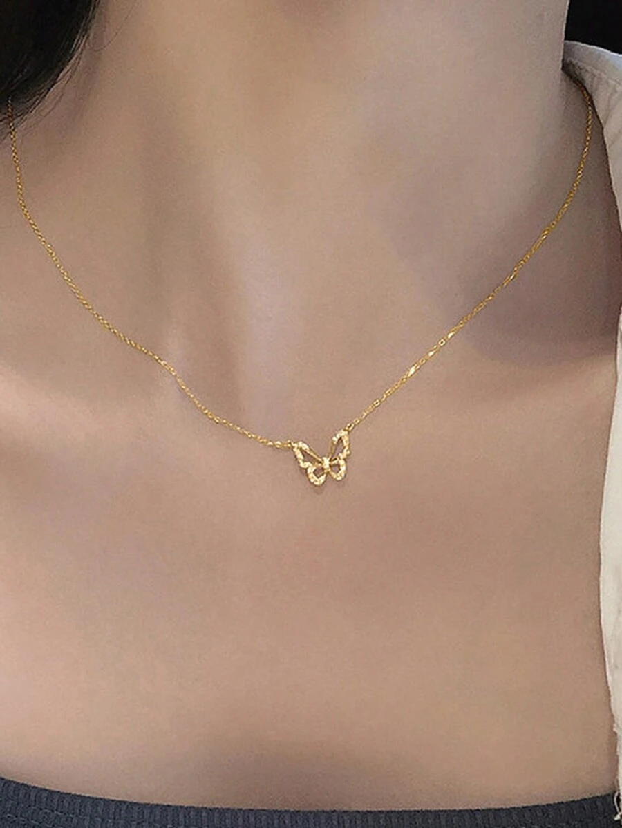 BALMORA 1pc Elegant S925 Sterling Silver Hollow Butterfly Inlaid Crystal Adjustable Clavicle Chain Necklace, Gift For Girlfriend