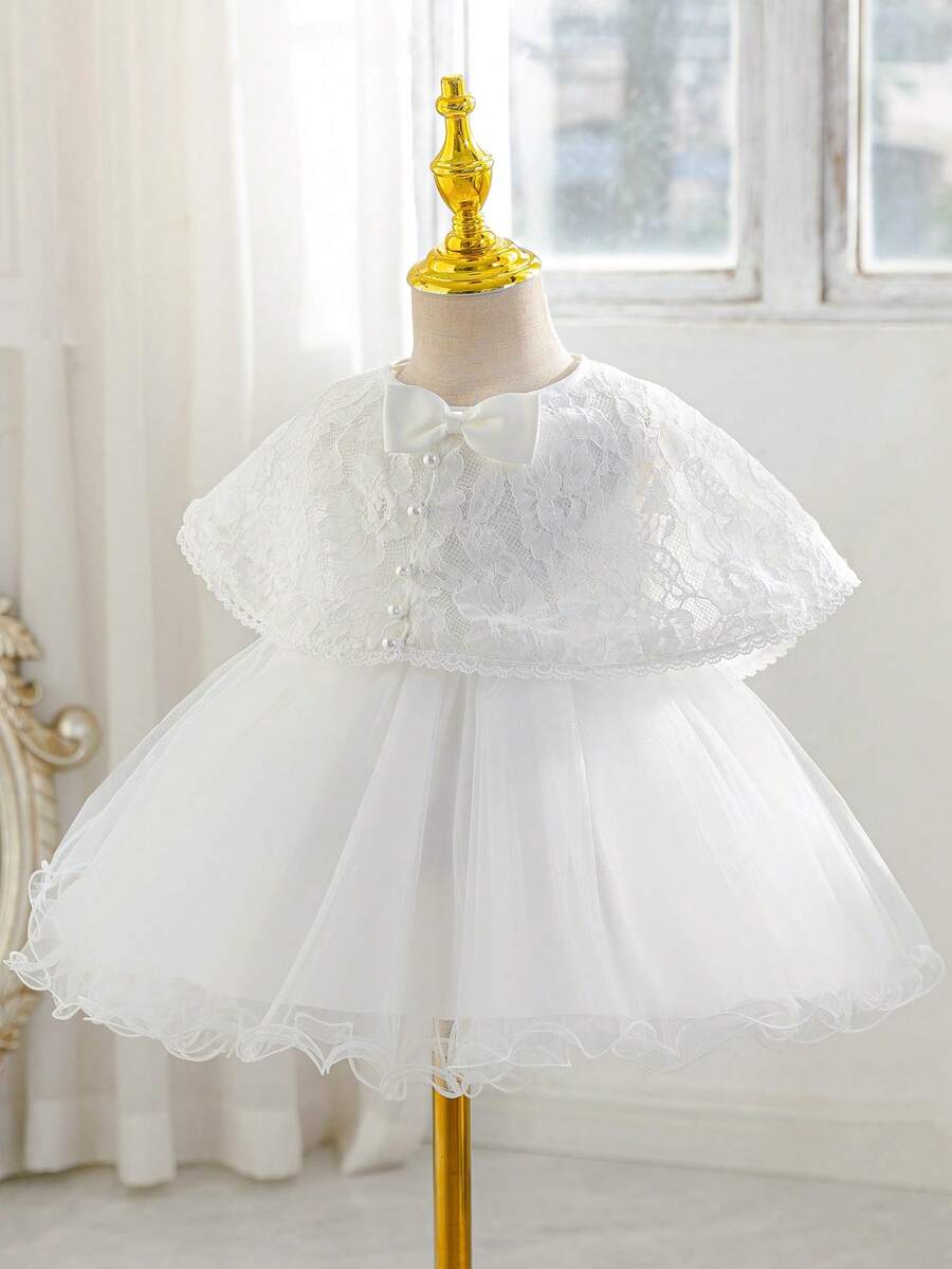 Baby Girls' White Dress, 0-2 Years Old, Birthday Wedding Christening Lace Shawl Formal Dress Set