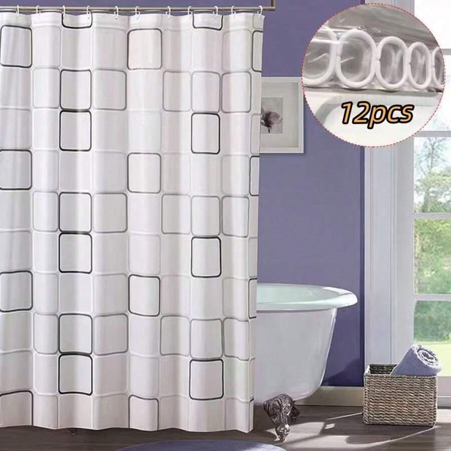 Bathroom Shower Curtain Partition, No Drilling Required, Comes With 12 Shower Curtain Hooks