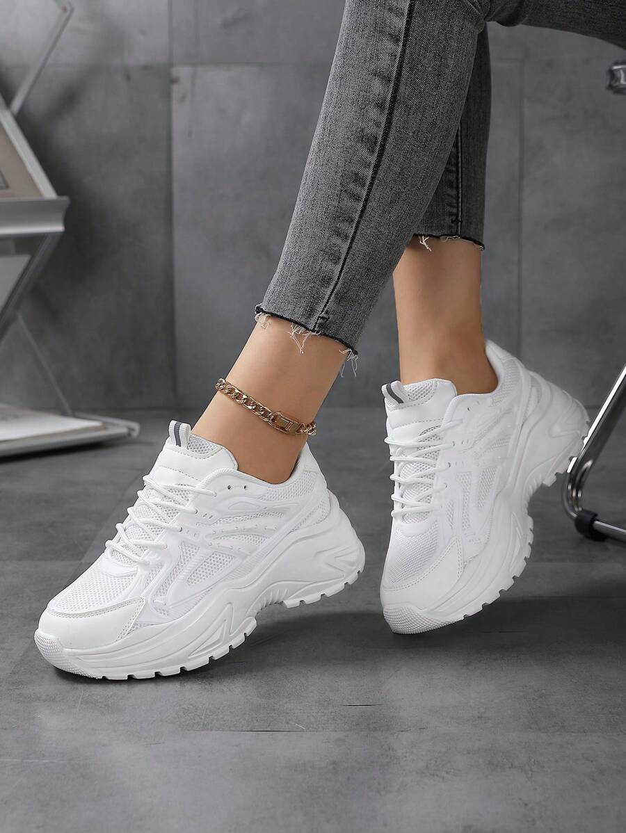 1 Pair Casual Sneakers For Teens, Breathable Mesh Upper, Thick Sole, Platform, Fashionable & Versatile White Shoes, Comfortable & Non-Slip, Suitable For Girls, Students, Campus, All Seasons