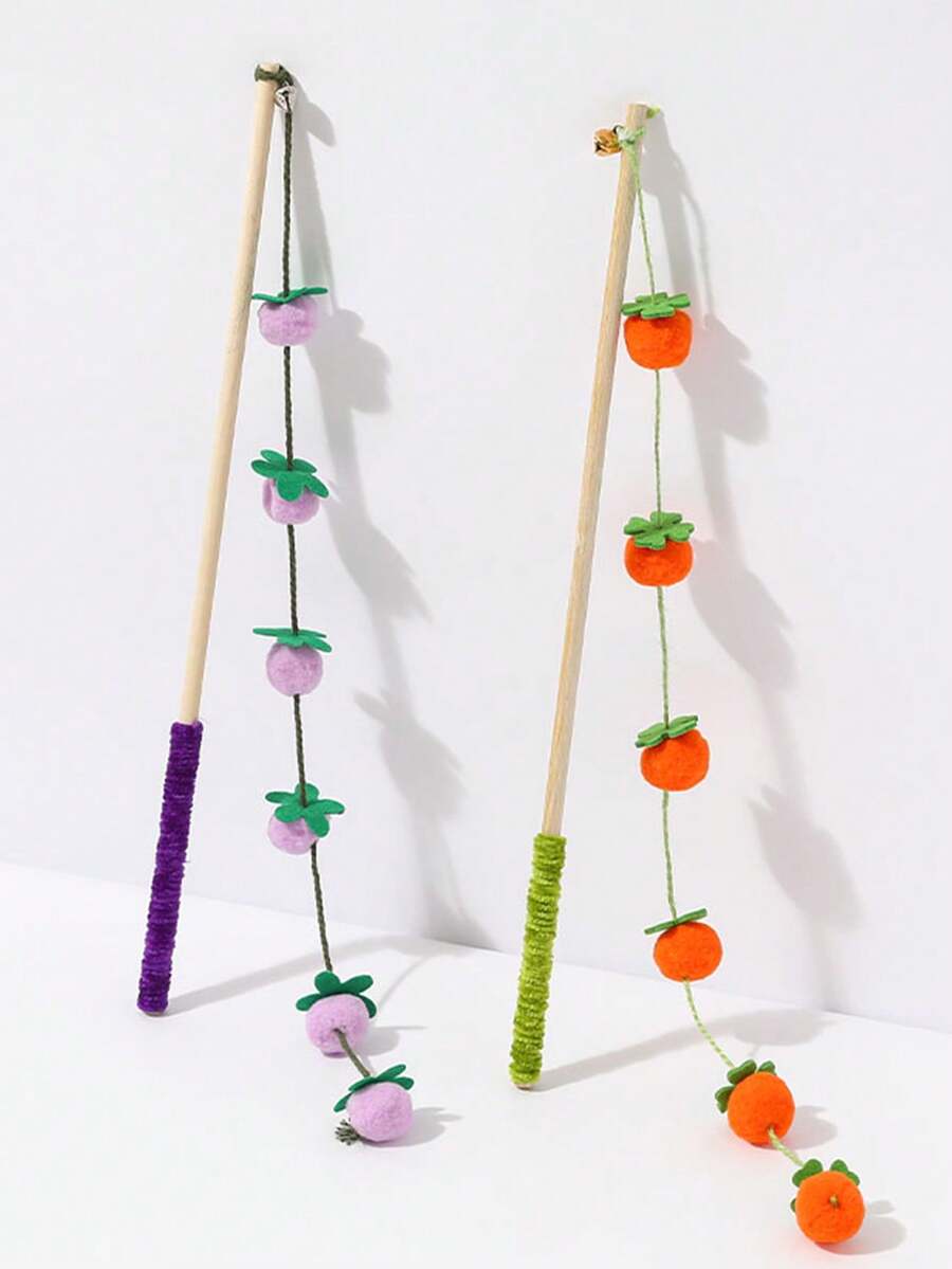 Cat Scratching Post Cat Toys, Feather Teaser Wand With Bells, Wooden Stick Tomato String Interactive Toys For Cats