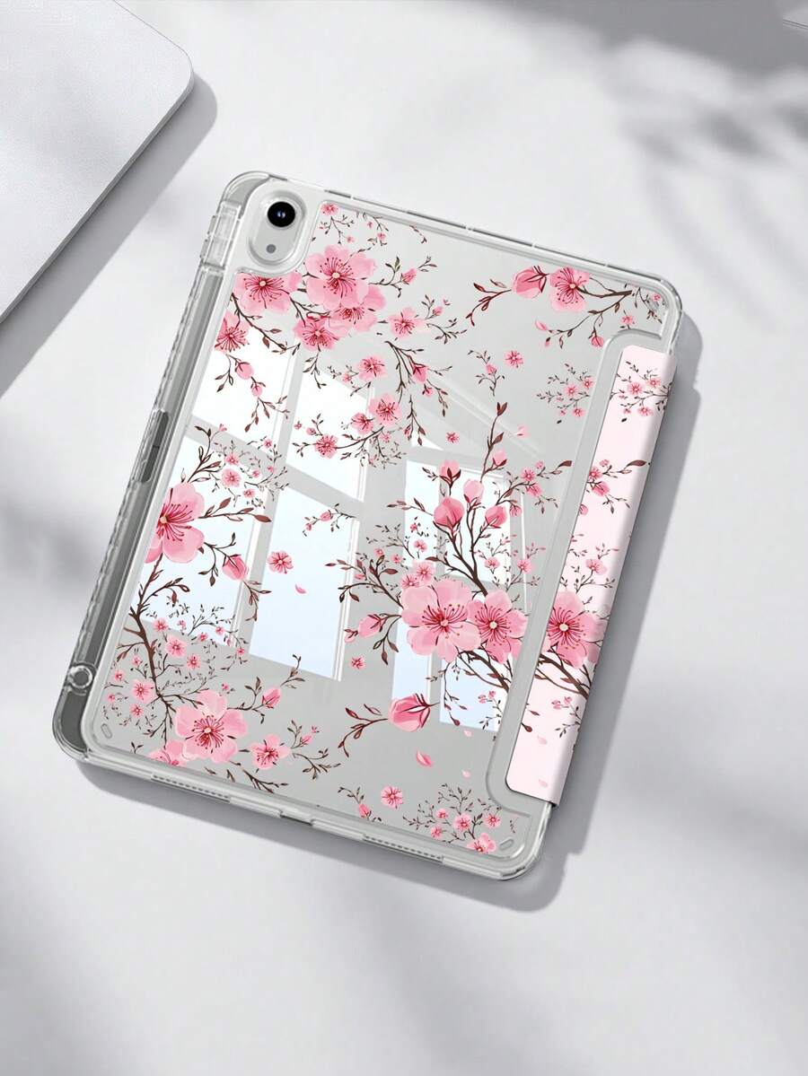 Cherry Blossom Tree Pattern Tablet Case Compatible With IPad Air 11-Inch M3 2025 / M2 2024, IPad Air 5th Generation 2022 , IPad (A16) 11 Inch 11th Generation 2025,Compatible With Samsung Galaxy Tab,Kindle Paperwhite 12th Gen 2024, Clear Back ,Fashion Pattern Protective Case,Autlueomatic Sleep And Wake-Up Function, Airbag Protection, Suitable For Gifts And Office Use