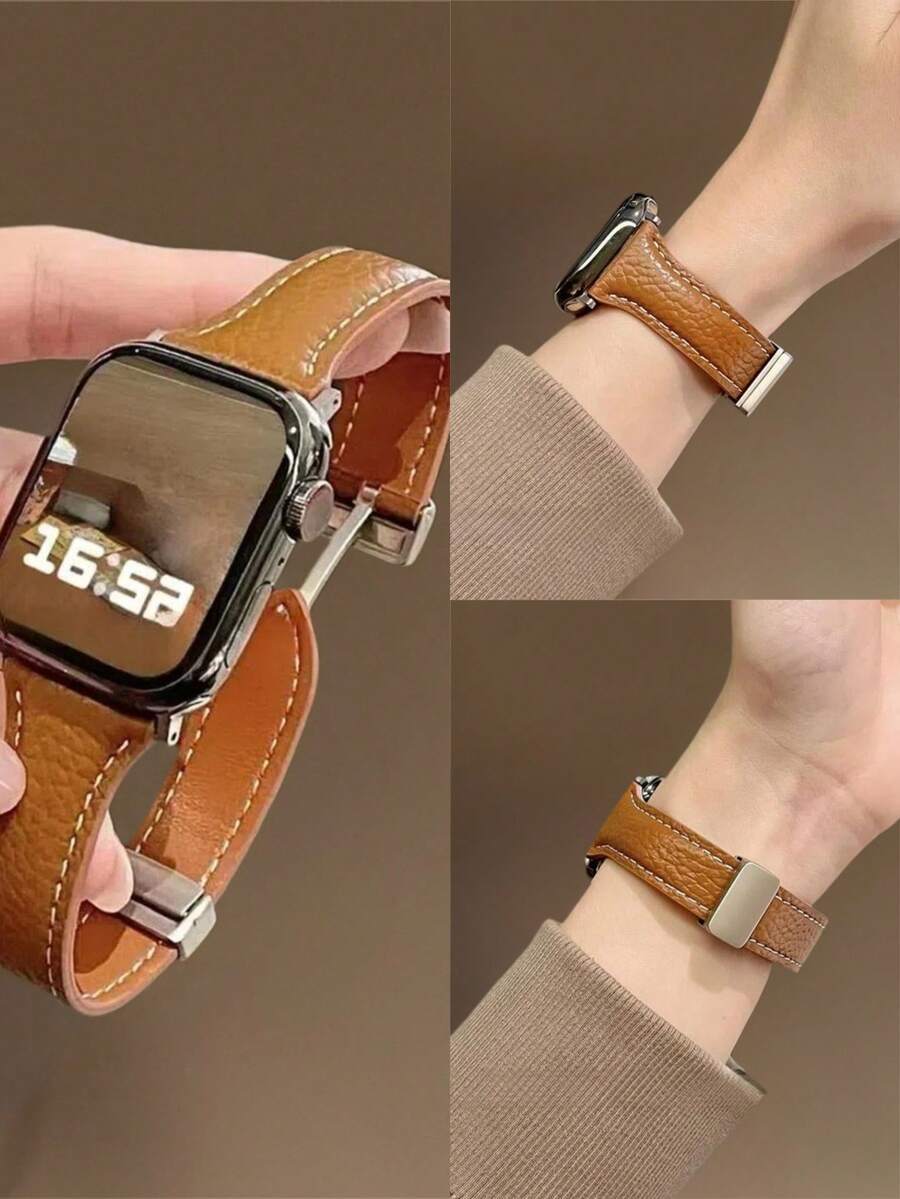 Chic Apple-Inspired Magnetic Leather Watch Band With Freely Adjustable Sizing | Sleek Design, Compatible With Apple Watch Ultra/SE/Series 11/10/9/8/7/6/5/4/3/2/1 | Fits 38mm 40mm 41mm 42mm 44mm 45mm 46mm 49mm