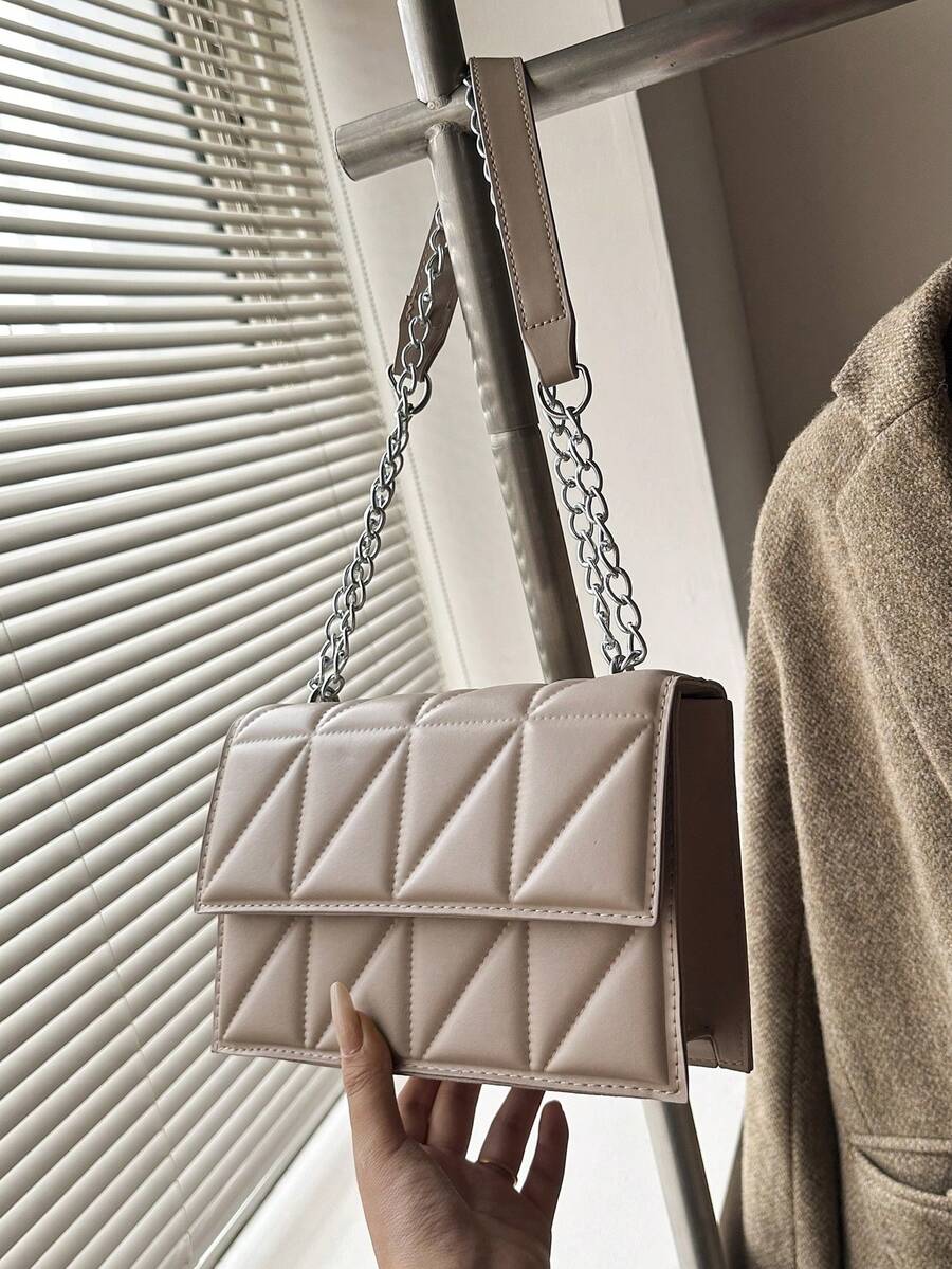 Chic High-End Fashion Flap Chain Crease Stylish Shoulder Bag, Crease Diamond Chain Shoulder Bag For Women