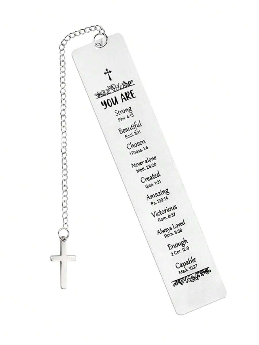 Christian Bible Bookmark, Women's Metal Bookmark With Religious Bible Verse, First Holy Communion Gift For Her, With Church Cross Chain, Easter Gift, Casual, Elegant, Cute, Stainless Steel