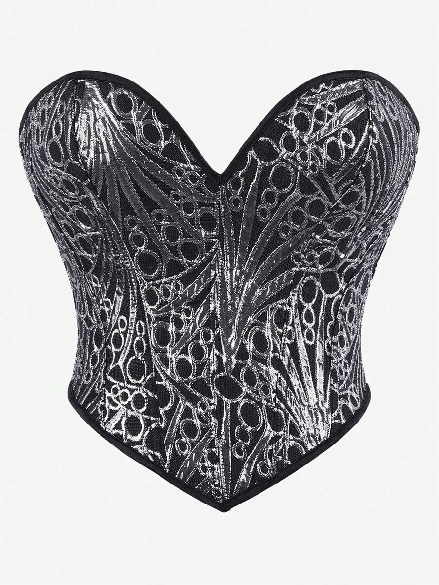 Corset Top Strapless Women Shapewear Bustier Punk Style Embroidery Bodysuit Slim Tight Boned Bodice