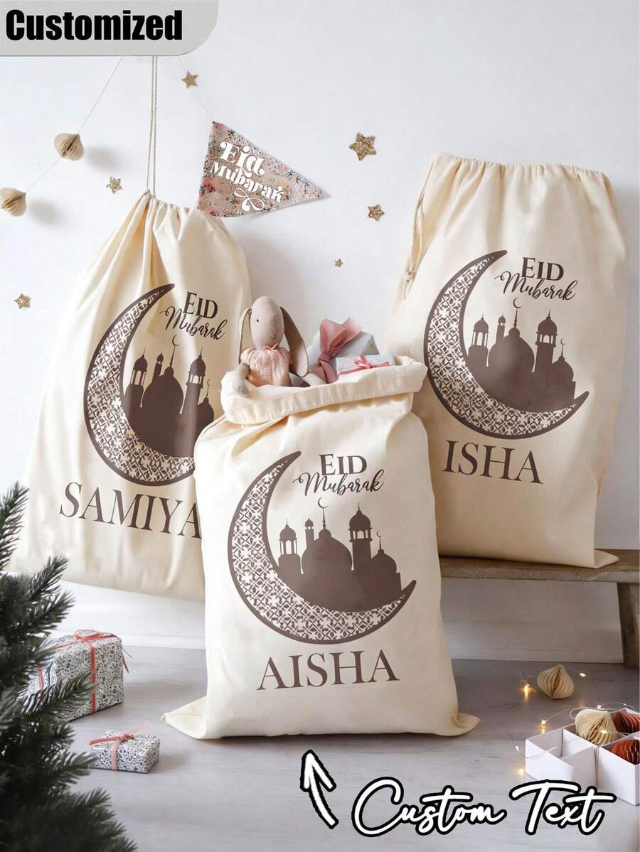 Customizable Ramadan Gift Bag, Personalized Drawstring Storage Bag, Printable Name, Personalized Eid Al-Fitr Gift Bag, Lightweight Foldable, Fashionable Multifunctional, DIY Ramadan Bag/Taraweeh Prayer Bag/Ramadan Gift/Ramadan Gift/Ramadan Giveaway/Islamic Gift/Ramadan Tote Bag, Holiday Gift Bag