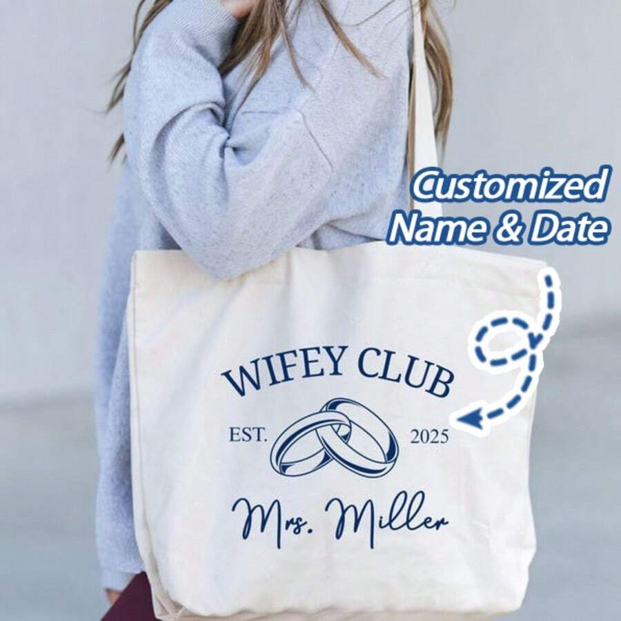 Customized Wife Club Tote Bag, Women's Tote Bag, Wife Gift, Honeymoon Tote Bag, Newlywed Gift, Newlywed Couple Gift, Newlywed Wife Gift, Wedding Gift