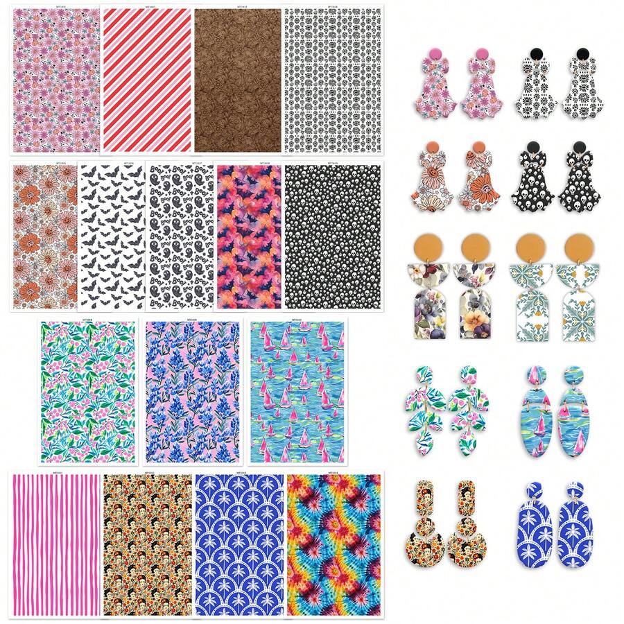 DONQE Flower Floral Pattern Printing Water Transfer Paper, Making Polymer Clay Earrings, Double-Sided Cement Transfer Sticker DIY Manual Mold Halloween