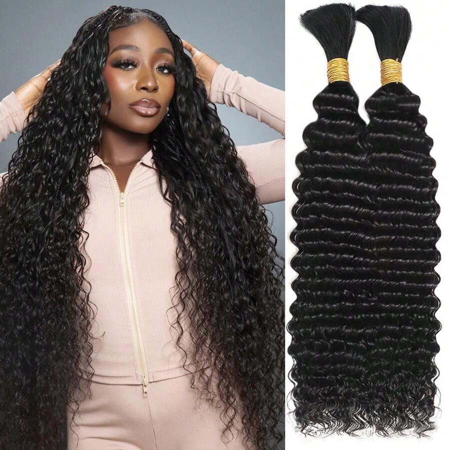 Deep Wave Bulk Human Hair For Braiding Brazilian Virgin Human Hair Extensions Two Bundles Micro Braiding Human Hair 100g No Weft(18inch, Natural Black)