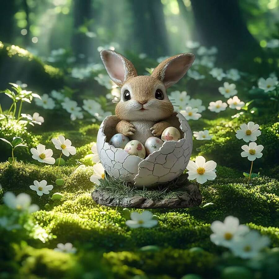 Easter Colorful Egg Cup Cute Rabbit Acrylic Outdoor Garden Sculpture Ground Plug Decoration Courtyard Props