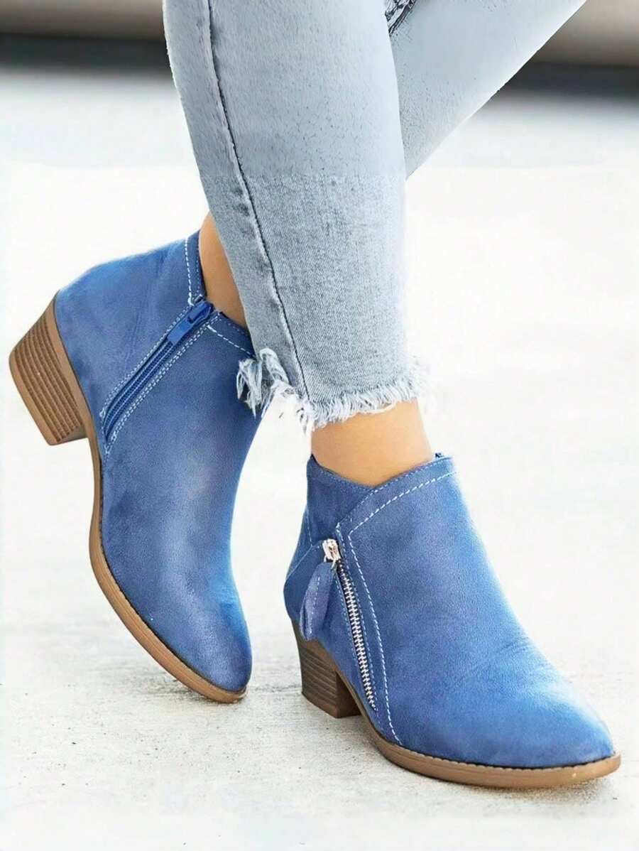 • Fall/Winter 2025 Women's Popular Versatile Suede Ankle Boots And Short Boots - Blue - View 2