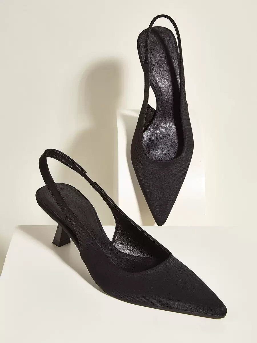 Fall/Winter Minimalist Point Toe Heeled Slingback Pumps, Elegant, Kitten Heels, Party