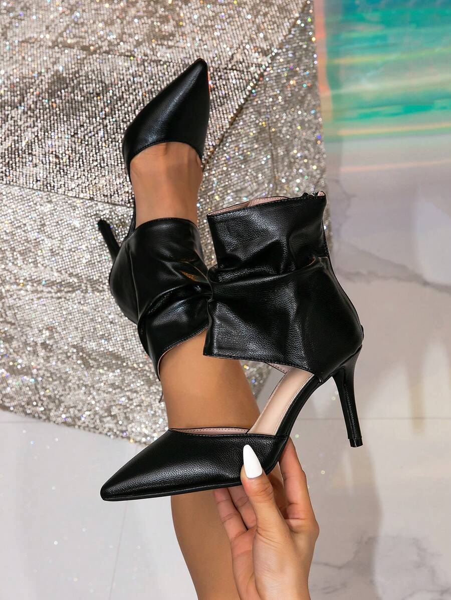 Fall/Winter Women's High Heel Boots, Fashion Short Boots, Black, Hollow-Out Design, Pleated Ankle Boots With Zipper Back, Pointed Toe Stiletto High Heel Boots, Black Leather Hollow-Out Short Boots For Summer,Boots For Women