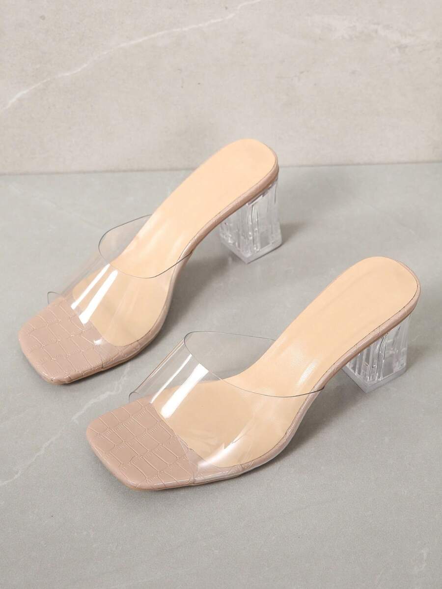 • Fashion Women's Crystal Chunky Heel High Heels Sandals, Slip-Resistant Transparent Strap Slides, Elegant High Heel Mules, Spring/Summer New Arrivals - Apricot - View 4