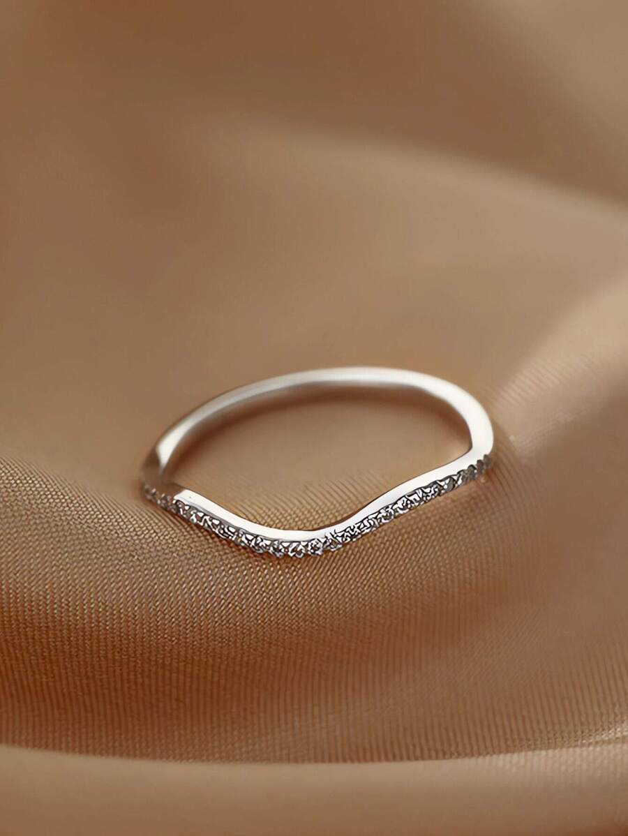 • GAGAFEEL 1pc S925 Sterling Silver Wave Design Zirconia Inlaid Ring, New Simple Style Fashionable Personalized Index Finger Ring - Silver - View 7