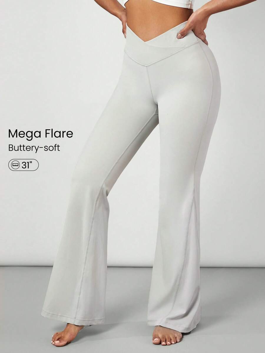 GLOWMODE 31" FeatherFit™ Crossover Waist Mega Flared Leggings Pants Low Impact Yoga Daily