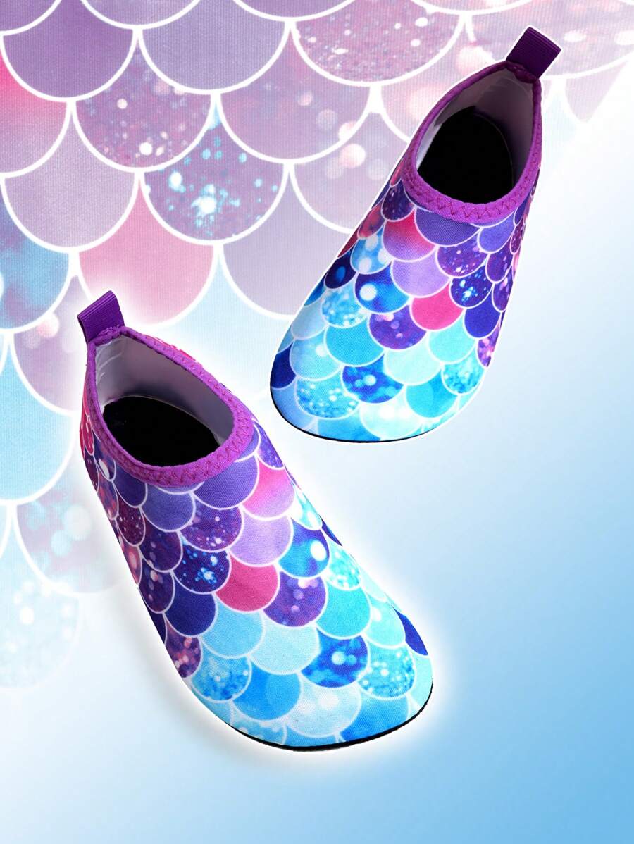 Girls' Water Shoes Kids & Aqua Shoes Kids With Enchanting Fish Scale Pattern - Ultra-Lightweight, Anti-Slip, Cut-Proof For Beach, Water Park, Grass & Yoga, Quick-Drying