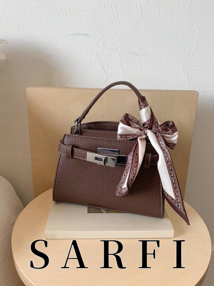 High-End Elegant Scarf Decor Women's Handbag, Minimalist Letter Decor Adjustable Shoulder Strap Crossbody Bag, New Autumn Fashion Metal Hardware Design Shoulder Commuter Bag, Old Money