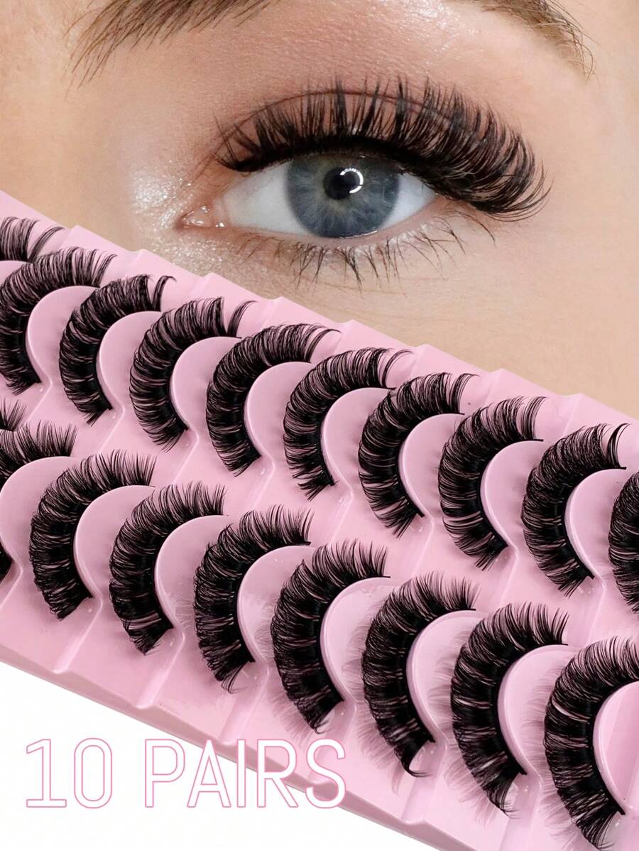 Hinarin Natural Look False Eyelashes Russian Strip Lashes Mink Wispy Fluffy Lashes Pack D Curl Thick Full Volume Cat Eye Lashes Look Like Extensions 10 Pairs Strip Lashes,Lashes,Eyelashes,Fake Lashes