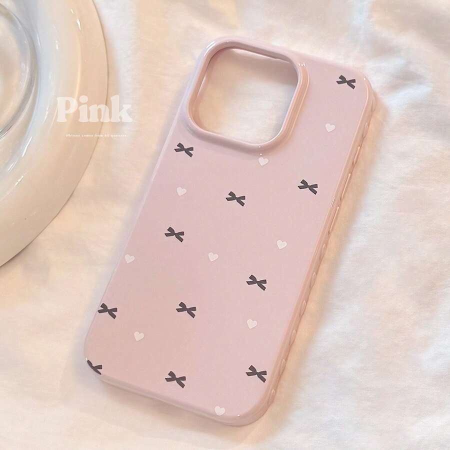 • KAIWD 1pc Guava Pink & Deep Gray Bowknot Soft Case Compatible With Iphone 17 Pro Max, Apple 15, Sweet, Girly, Geometric, Minimalist, Fresh, Soft Girl, Ins Style - Baby Pink - View 9