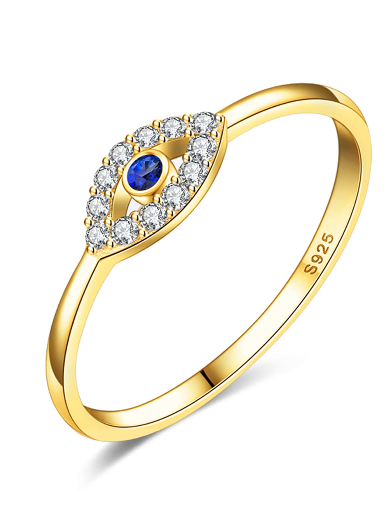 Kaletine 1pc 925 Sterling Silver & Gold-Tone Small Eye Design Ring, Suitable For Daily Wear