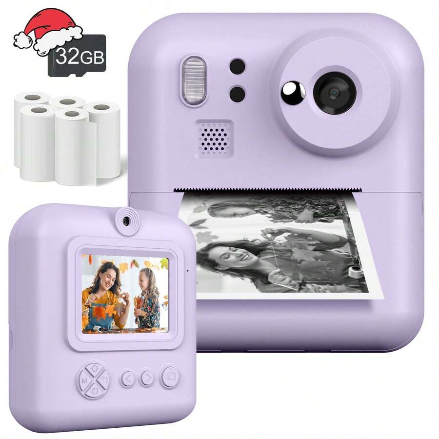 Kids Instant Print Camera Set, Front & Rear Selfie Camera, Supports 1080P Video, Suitable For 3-12 Years Old As Christmas, Birthday And New Year Gift, Portable Travel Print Digital Camera Toy For 6-12 Years Old