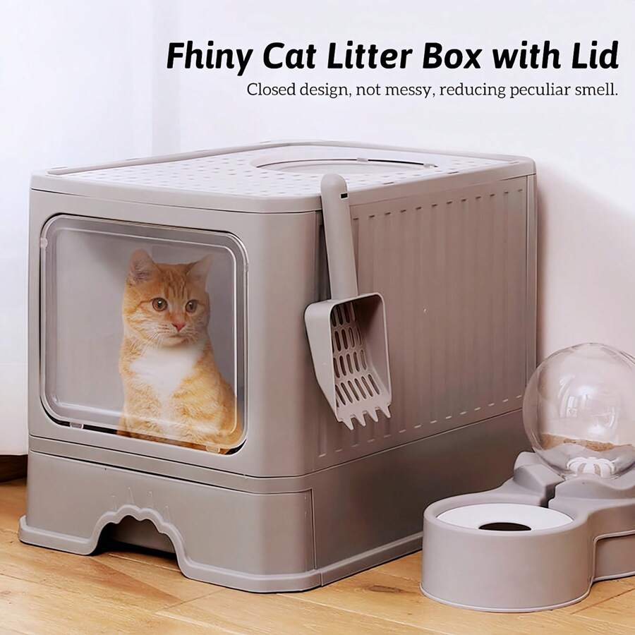 Large Fully Enclosed Cat Litter Box, With Drawer & Top Entrance, Odor-Proof And Splash-Proof(50CM*40CM*40CM)