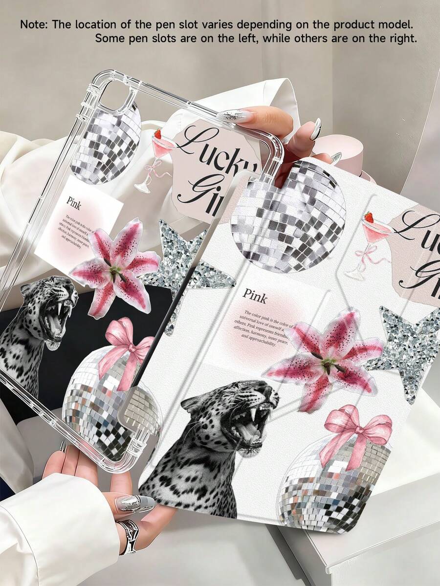 Leopard Light Ball Lily Pattern Tablet Case Compatible With IPad Air 11-Inch M3 2025 / M2 2024, IPad Air 5th Generation 2022 , IPad (A16) 11 Inch 11th Generation 2025,Compatible With Samsung Galaxy Tab,Kindle Paperwhite 12th Gen 2024, Clear Back ,Fashion Pattern Protective Case,Autlueomatic Sleep And Wake-Up Function, Airbag Protection, Suitable For Gifts And Office Use