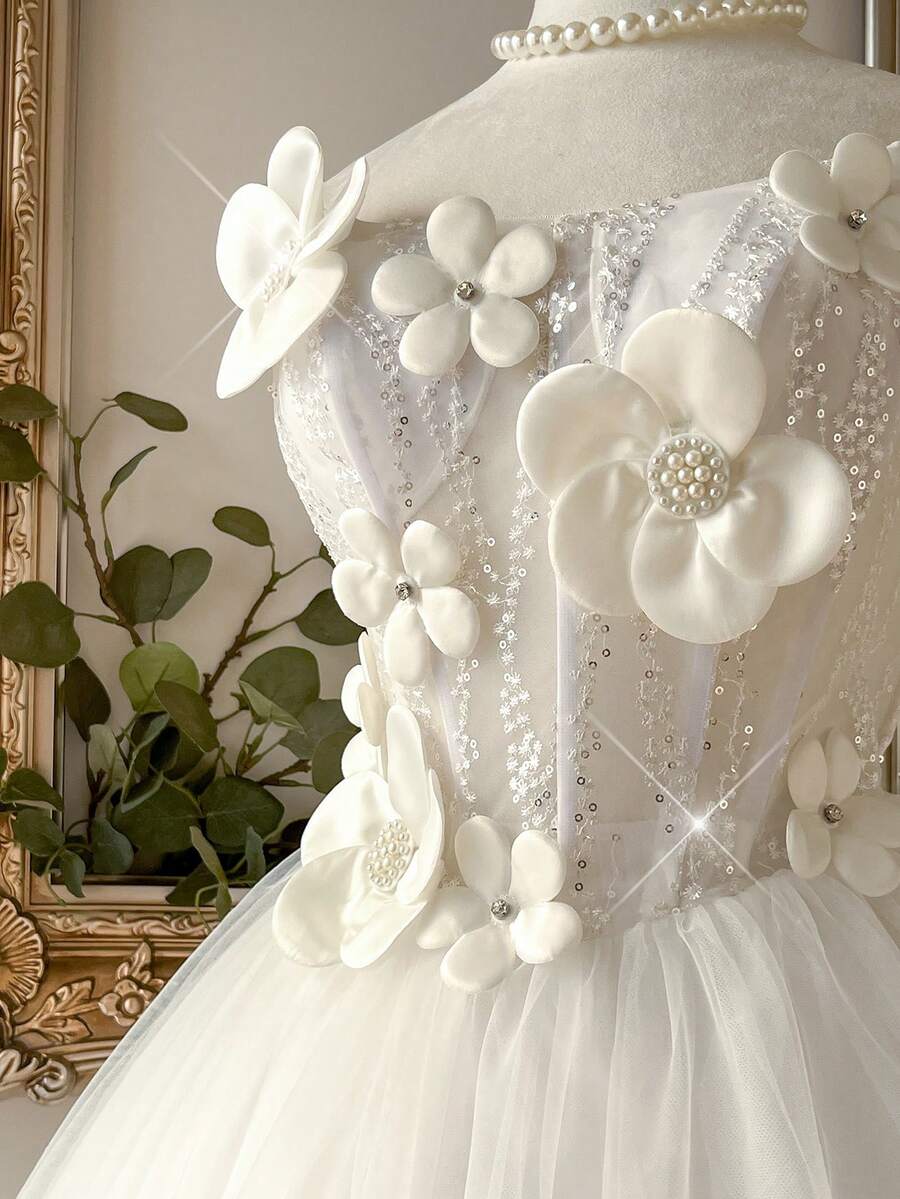 Lovelzi Elegant And Luxurious White Sequined Embroidered Mesh Dress, Handmade Three-Dimensional Flower Pearl Embellishments, Sailboat Neckline With Multiple Boning, Slim A-Line Silhouette, Short Style, Suitable For Weddings, Bridal Gowns, Formal Occasions, And Gift Parties (Heavy-Work Design).