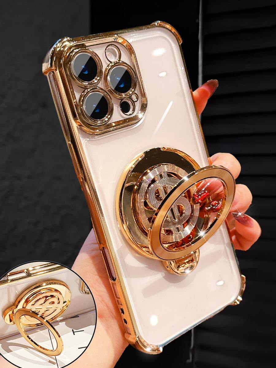 • Luxury Electroplated Transparent Gold Phone Case, Creative Dollar Sign Holder, Rhinestone Shiny Y2K Style, Shockproof, New Summer Fashion Silicone Soft Protective Case Compatible With Iphone 16/16E/15/14/13/12/11/X/XS/XR/8/7 Plus/Pro/Max/Mini, Galaxy S24/S25 Ultra, Compatible With Xiaomi Redmi, Honor, OPPO Reno, MOTO Infinix Women 2025 - Gold - View 4