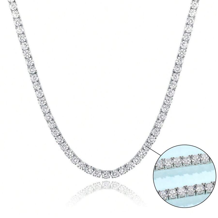 MDFUN 18K White Gold Plated Tennis Necklace | 4.0mm Round Cut Cubic Zirconia Simulated Diamond Tennis Chain, Unisex