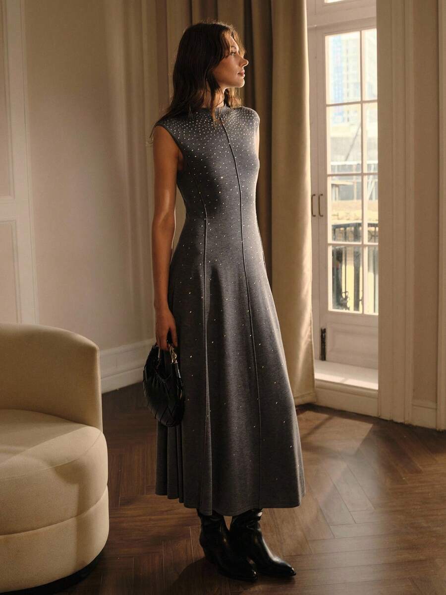 MOTF PREMIUM KNITTED SLEEVELESS RHINESTONE EMBELLISHED SWEATER DRESS