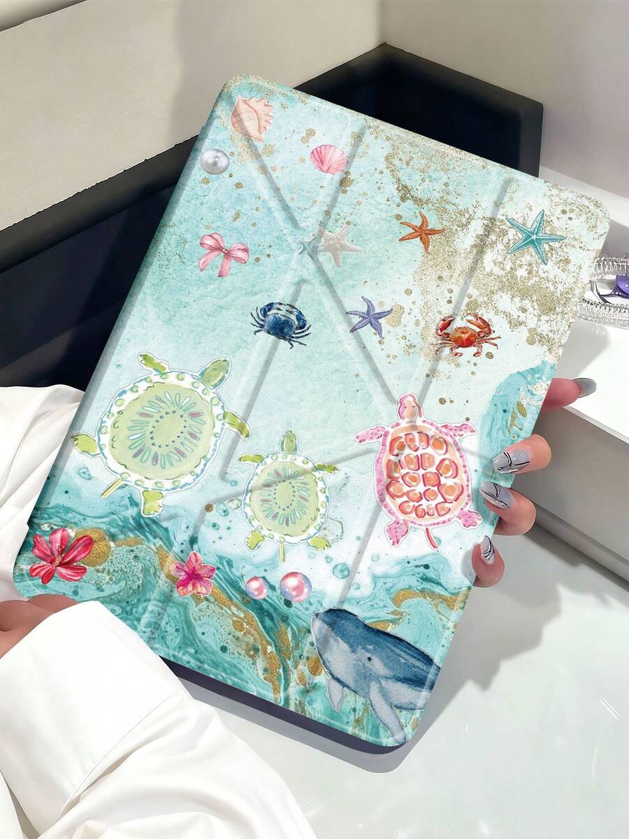 Marine Elements, Sea Turtles, Shells, Hibiscus Flowers Tablet Case Compatible With IPad Air 11-Inch M3 2025 / M2 2024, IPad Air 5th Generation 2022 , IPad (A16) 11 Inch 11th Generation 2025,Compatible With Samsung Galaxy Tab,Kindle Paperwhite 12th Gen 2024, Clear Back ,Fashion Pattern Protective Case,Automatic Sleep And Wake-Up Function, Airbag Protection, Suitable For Gifts And Office Use