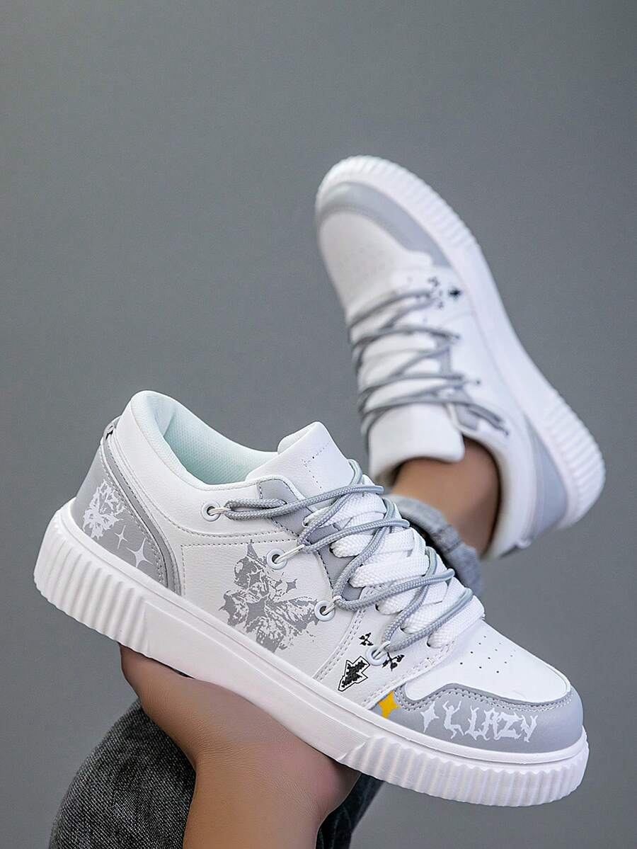 Herrskor med snörning, moderiktiga streetstyle-sportskor, asymmetriska grafiska tryck
