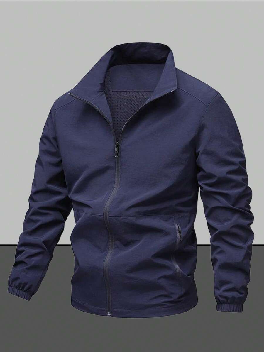 Men's Fashionable Versatile Solid Color Turndown Collar Casual Jacket, Autumn