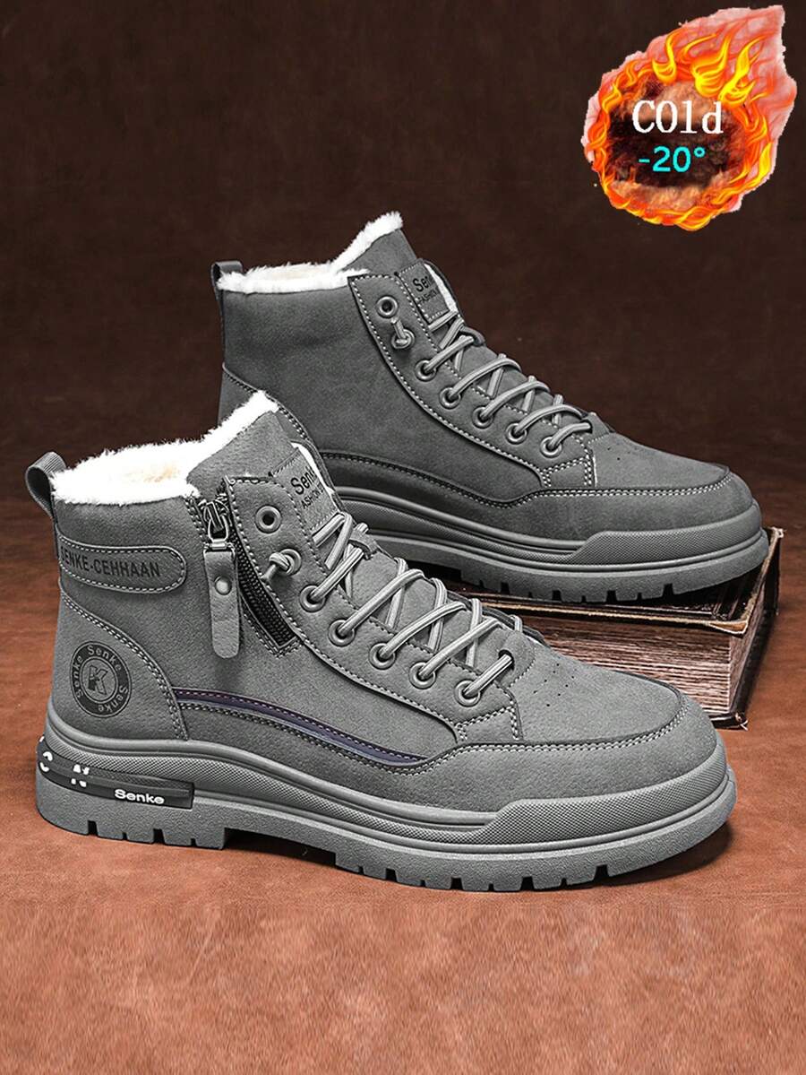 • Men's High-Top Leather Boots, Autumn/Winter New Arrival, Thermal Lined, Thick Sole, Increased Height, Non-Slip, Round Toe, Lace-Up, Side Zipper, Plus Size 46, Men's Boots, Mid-Calf, Fashion , Outdoor, Party, Street Style, Men's Outdoor Hiking Boots, Leather, Waterproof, Oil-Resistant, Men's Leather Shoes, Outdoor, Fashionable, Sports, Men's Anti-Puncture Anti-Crush Work Boots, Outdoor Desert Boots, Motorcycle Boots, Warm Fur Boots Suitable For -40°C - Grey - View 3