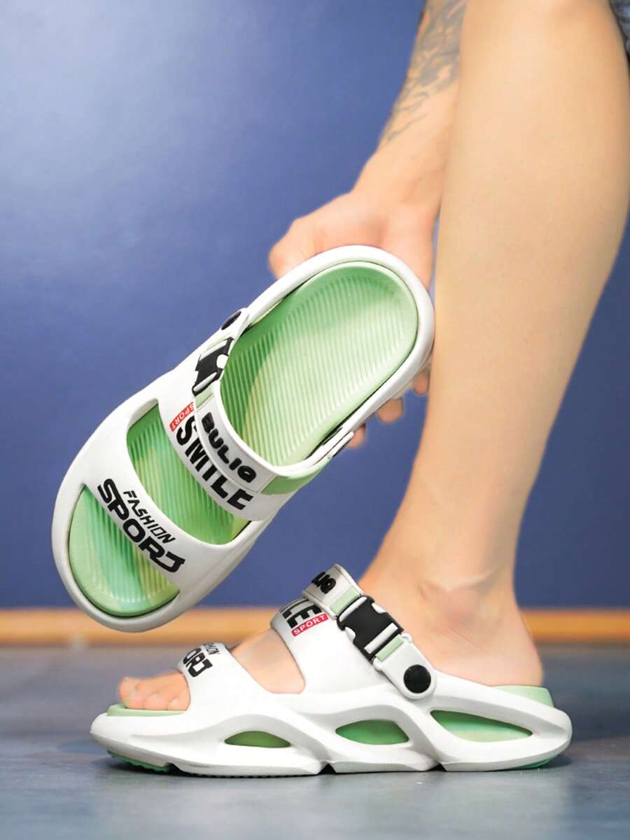 Herr sommarbokstävertryck halkfria casual tofflor, EVA snörning ihåliga andningsbara husstrandskor, unisex parmodeller