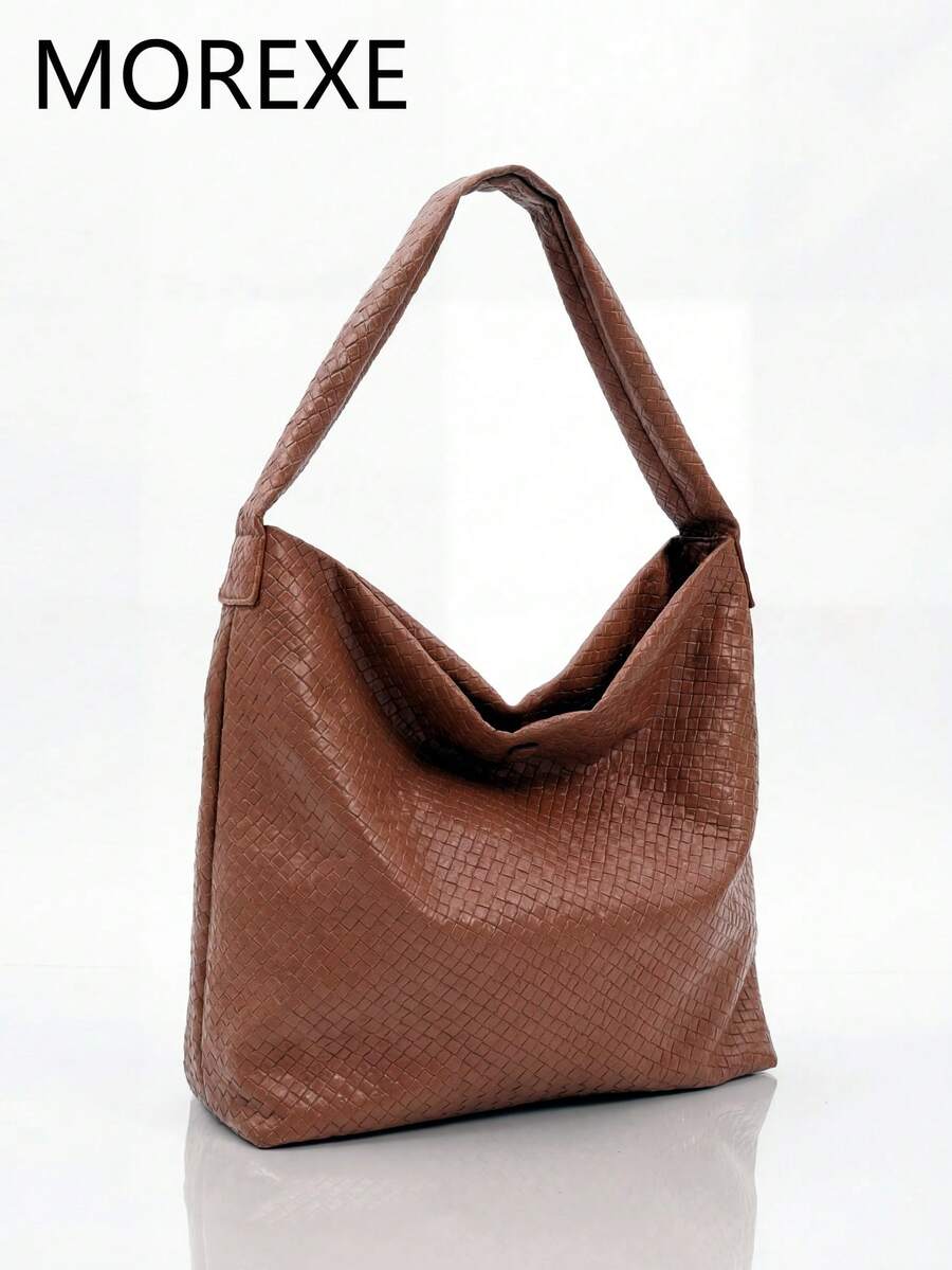 • Minimalist Style Women's Large Capacity Shoulder Bag, Simple Versatile Bucket Tote Bag, Office/Commute Shoulder Bag - Brown - View 4