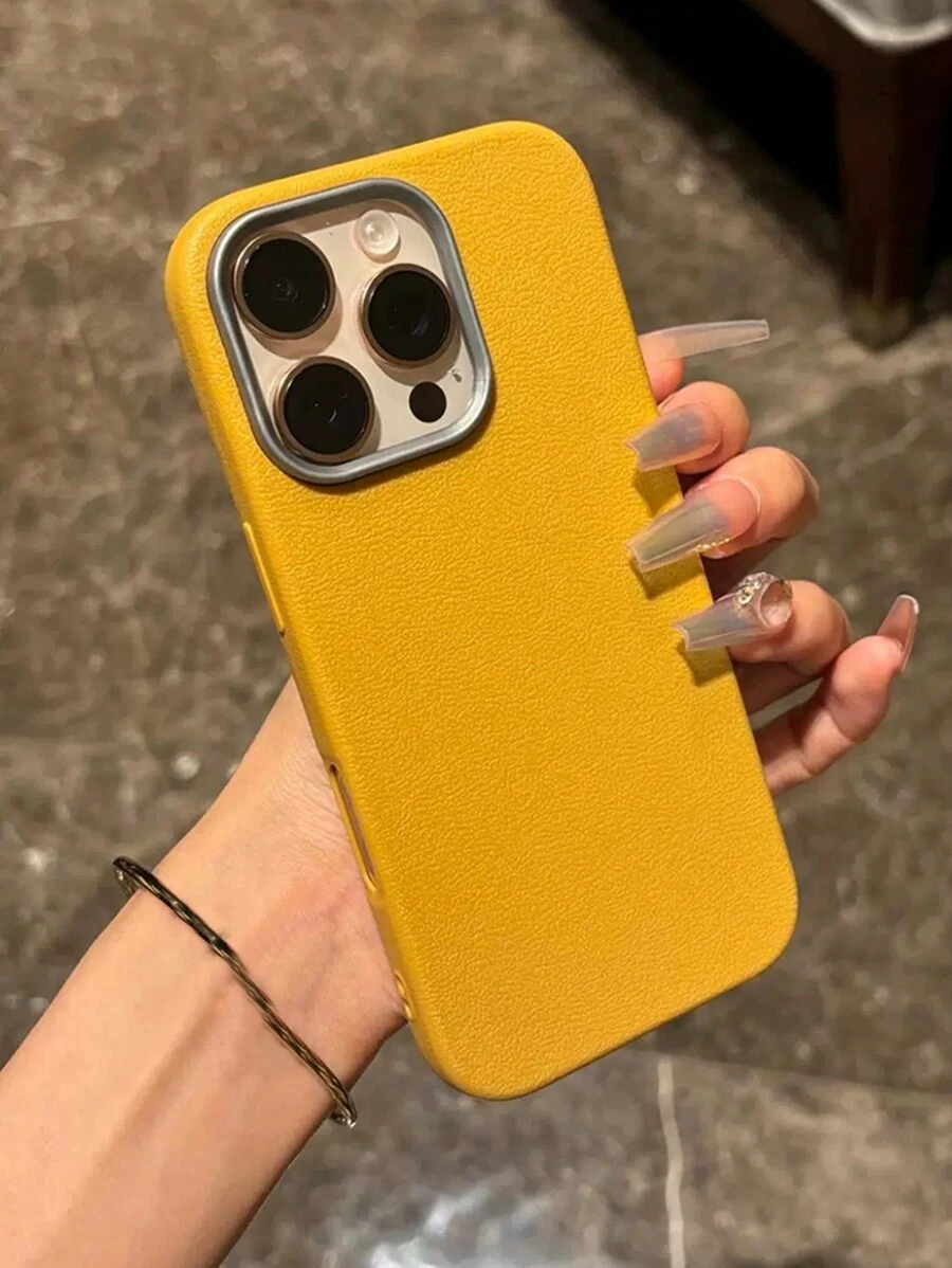 Minimalist Yellow Leather Texture Phone Case Compatible With IPhone 17 Pro Max/17 Pro/17 Air/17/16 Pro Max/16/16 Pro/16 Plus/15/15 Pro Max/15 Pro/15 Plus/11/12/13/14 Pro Max/11 Pro/11 Pro Max/12 Pro/12 Pro Max/13 Pro/13 Pro Max/7 Plus/14 Pro/14 Pro Max/14 Plus Soft Cover