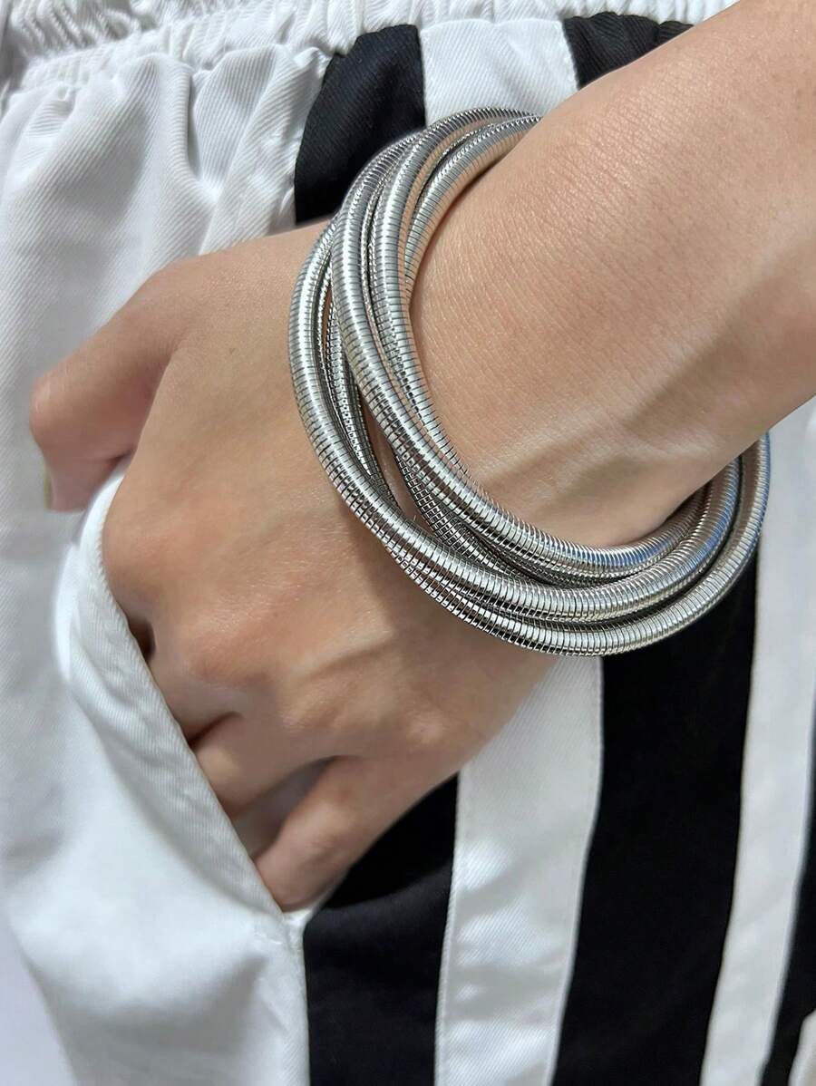 Multi-Layer Woven Hollow Metal Bangle Bracelets, Elastic & Adjustable, Great Gift For Women & Girls