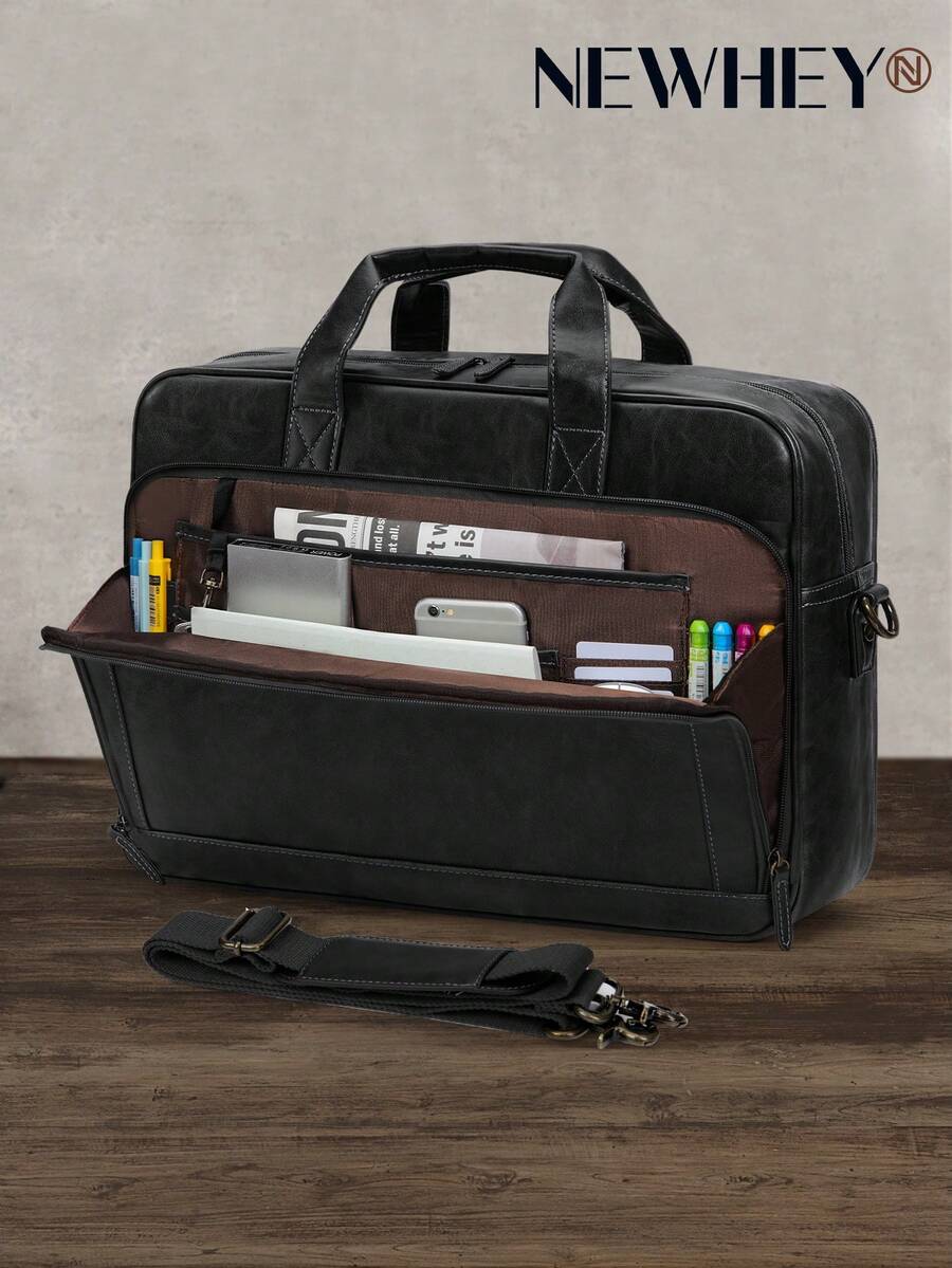 NEWHEY 16 Inch Men's Genuine Leather Laptop Bag, Vintage Messenger Bag, Large One Shoulder Office Laptop Bag, Retro College Style Backpack, For Work, Business, Travel
