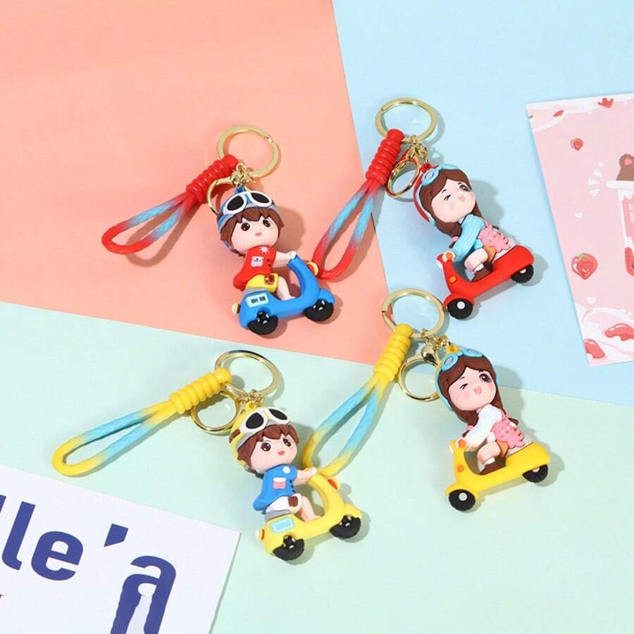New Couple Electric Car Keychain Pendant Wholesale, Delicate Student Backpack Charm, Car Key Chain Figurine, Versatile Gift