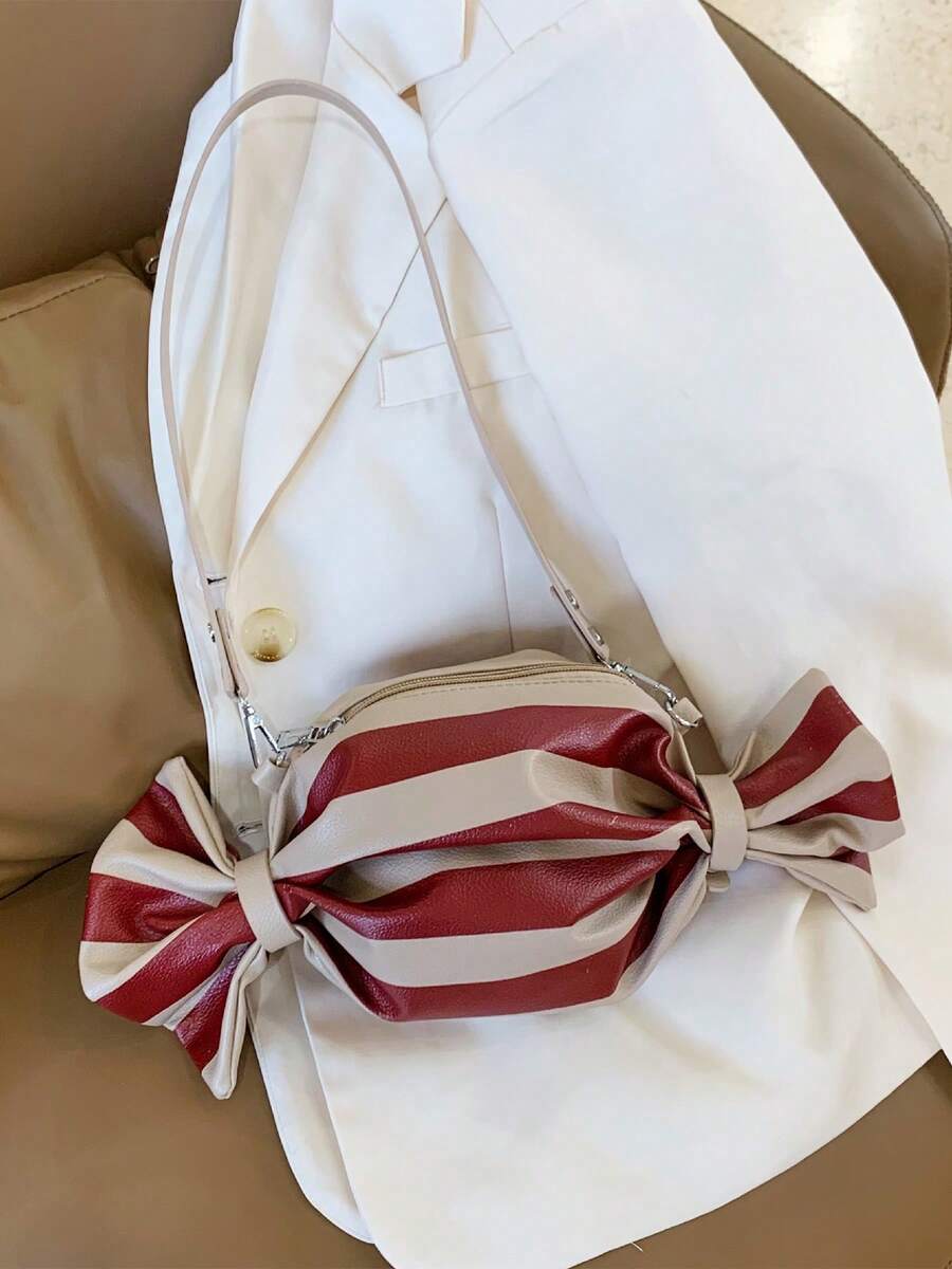 Niche Versatile Striped Candy-Shaped Shoulder Bag, Suitable For Daily Outings
