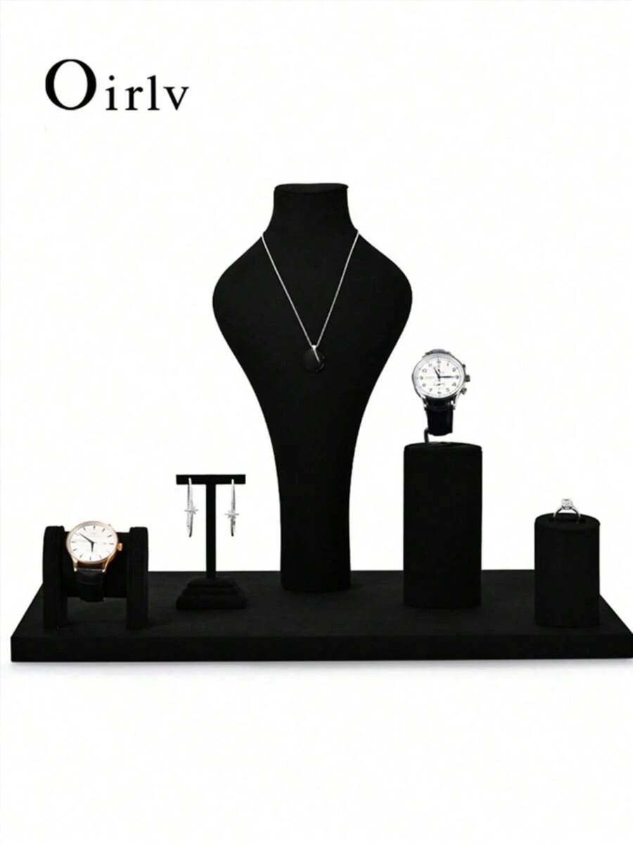 Oirlv 1 st helsvarta premium smyckesställ för ringar, örhängen, klocka och halsband, skyltdocka för huvud, hals, skyltdocka och halsband, disk för smyckesställ