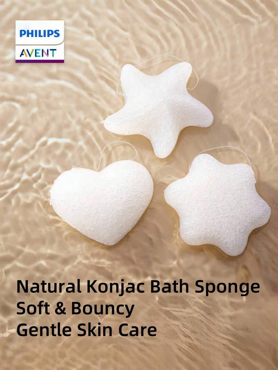 Philips Avent 3pcs Baby Bath Sponge - Super Soft Baby Bath Sponge - Natural Konjac Children Bath Sponge, Suitable For Infant And Toddler Bath