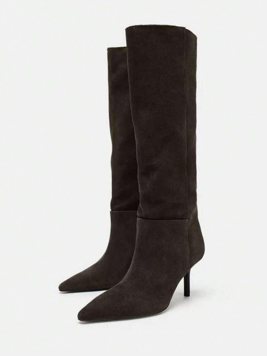 Pointed Toe Fashionable Versatile Suede Leather Thigh-High Boots