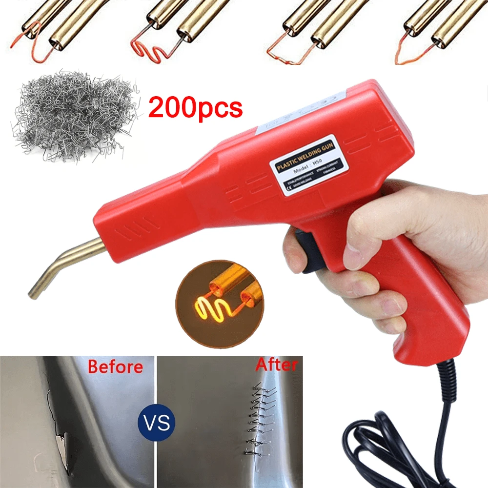 Portable Plastic Welding Gun, Welding Kit With 200 Welding Nails, Suitable For Repairing Cracks In Car Body Doors, Adhesive Welding Tool Kit, European Plug Welding Machine (Red/Black/Yellow/Blue)